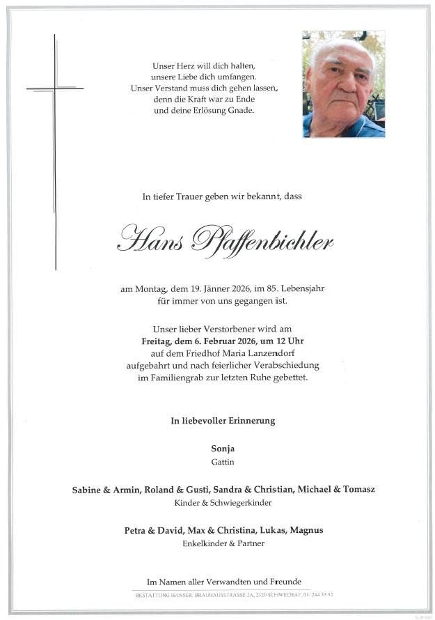 Wir werden Hans Pfaffenbichler als prägende Persönlichkeit für unseren Ort und im Zuge seines langjährigen Wirkens als Mitglied im Gemeinderat